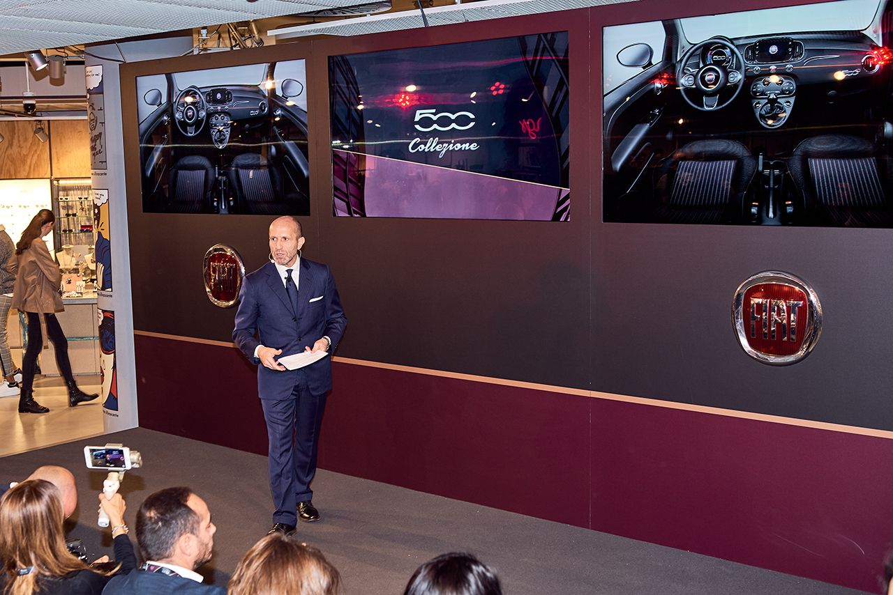Presenti all’evento Luca Napolitano, Head of EMEA Fiat and Abarth brand, ed Emanuele Farneti, direttore de L’Uomo Vogue e di Vogue Italia. I due hanno animato un dibattito sui valori che accomunano l’icona del marchio Fiat e l’Uomo Vogue. A rimarcare questi concetti le parole di Luca Napolitano: “La storia di Fiat 500 è una vera e propria storia di successo. Un’auto che in oltre 60 anni ha portato un po’ d’Italia nelle strade di tutto il mondo, diventando la vettura Fiat più globale di tutte. Ed è una vera e propria “storia di copertina”, dove la 500 diventa una calamita che attira a sé altre icone di stile e di design. E per il lancio della nuova 500 Collezione abbiamo appunto scelto un partner con valori comuni: L’Uomo Vogue”.