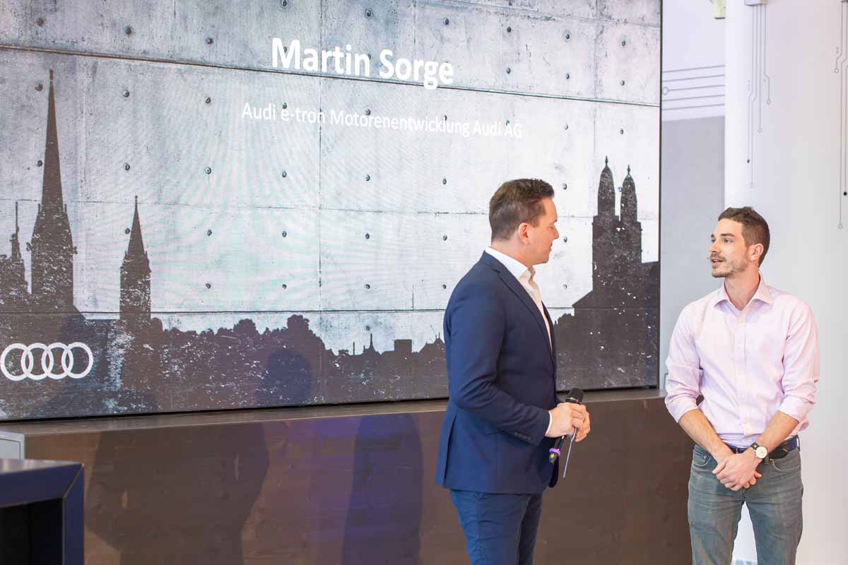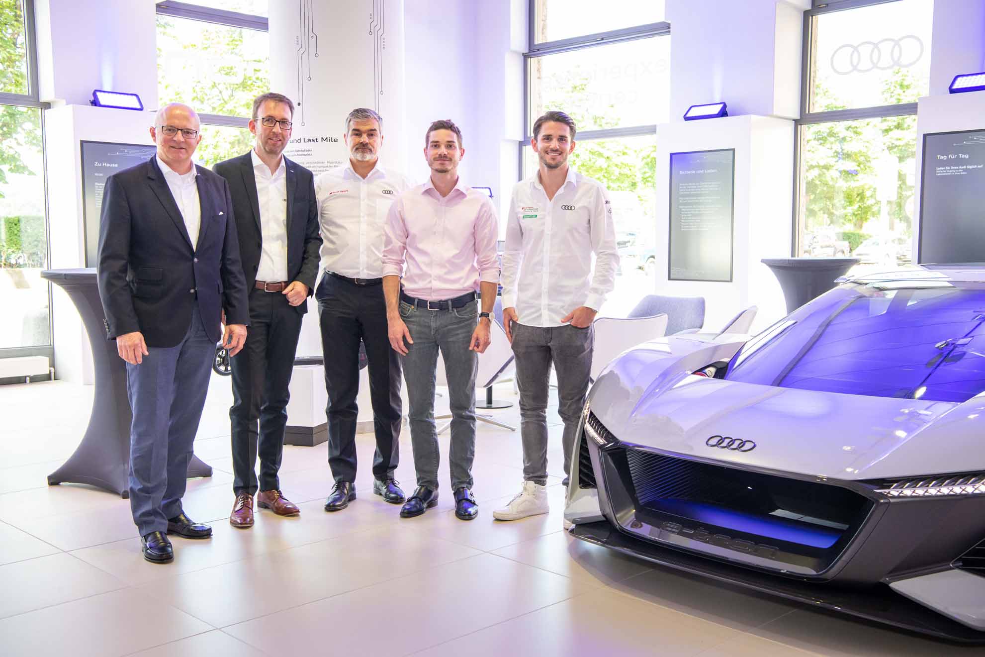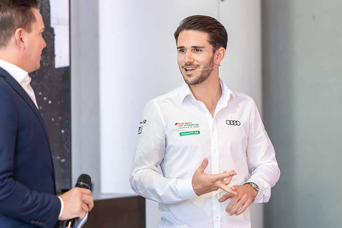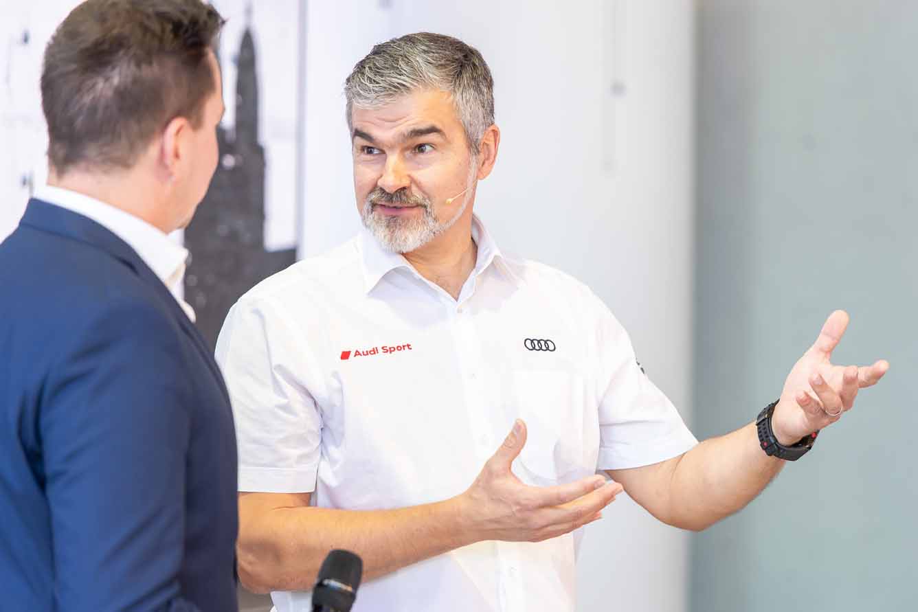 All’inaugurazione del nuovo “Audi e-tron experience center”, Dieter Jerman, Brand Director di Audi Svizzera, ha svelato le ultime novità e-tron, i programmi del centro di competenza Audi in tema mobilità elettrica e il team Audi Sport Abt Schaeffeler, che parteciperà il 22 giugno 2019 alla prima gara di Formula E nella capitale. Il direttore di Audi Svizzera ha aperto la conferenza informando sulle strategie di elettrificazione del marchio. Martin Sorge, del centro sviluppo motori Audi e-tron di Audi AG, Dieter Gass, responsabile di Audi Motorsport e il pilota Daniel Abt sono stati intervistati sull’evoluzione dell’elettro mobilità da Sven Epiney, SRF.