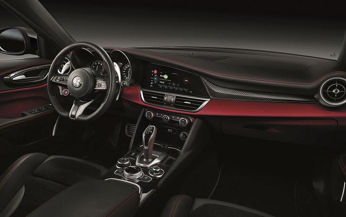 New Akrapovic dual mode titanium exaust, V6 bi-turbo da 510 CV, cambio AT8, fari luci posteriori bruniti. Sedili che promettono grande comfort e di poter personalizzare la propria Quadrifoglio.