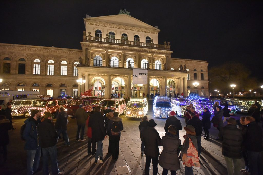 Die BlinkiBullis machten vor Rathaus, Oper und Maschsee Halt, eroberten die Herzen der Hannoveraner. VWNO war mit einem VW Bus T1 de Luxe (Bj. 1965) und einem VW Bus T2 A/B (Bj. 1972) unterwegs. Jedes Fahrzeug wurde zuvor mit einer rund 280 Meter langen Lichterkette und 2.800 LED geschmückt. Tobias Twele (Leitung VWNO): „ Eine tolle Aktion, an der wir uns gern beteiligt haben, damit unsere Bullis auch in der Weihnachtszeit Freude bereiten.“