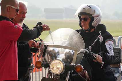 Voranmeldung und ohne eigene Ausrüstung chauffieren zu lassen und Fahrtwind einmal auf andere Art und Weise zu geniessen. Je mehr Fahrer von Seitenwagen und Trikes den Anlass besuchen, desto besser. Und natürlich sind auch alle anderen Motorradfahrer auf dem Flugplatzgelände und auf der Ausfahrt (maximal zehn Blöcke à bis zu 500 Bikes) willkommen – die Motorradmarke spielt keine Rolle.