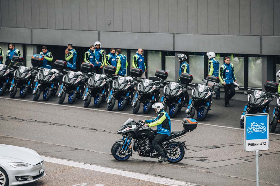 In diesem Jahr kommt ausschliesslich die revolutionäre Yamaha NIKEN mit ihrer einzigartigen Dreirad-Technologie zum Einsatz. Bereits zwei Wochen vor der Tour de Suisse erhalten die Mitglieder des Sicherheitsteams ihre Maschine – zum Einfahren und Eingewöhnen. Die Automatismen auf den Motorrädern müssen bis zur Tour de Suisse sitzen.
