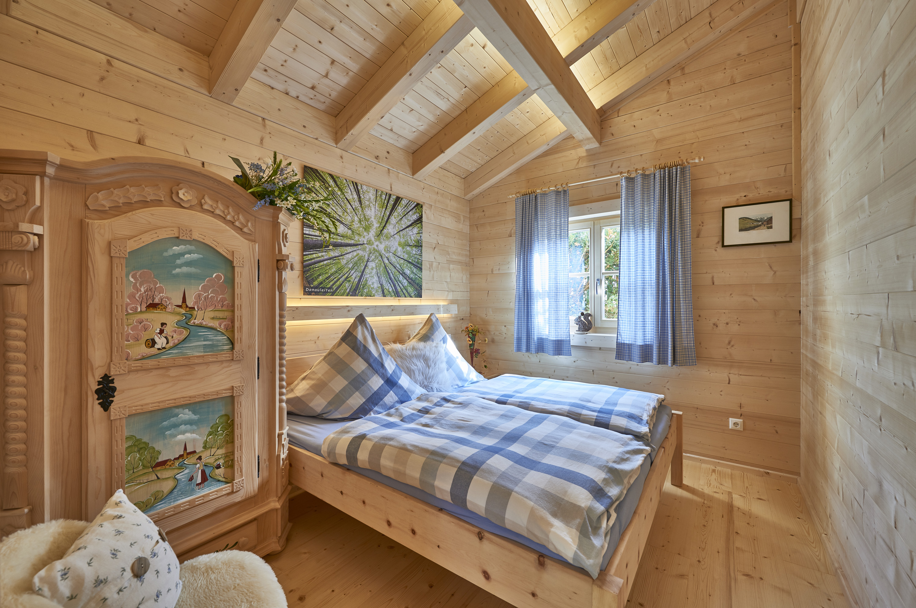 Fichten- und Zirbenholz kamen auch bei der Inneneinrichtung zum Zug, um die sich das Ehepaar selbst gekümmert hat. „Wie bei allen unseren Ferienwohnungen haben wir auch bei dem neuen Chalet höchsten Wert auf ein stimmiges Gesamtbild gelegt. Klar, dass passend zum Blockhaus deshalb viele der Möbel von einem Schreiner aus der Region stammen und wir jeden Raum mit viel Liebe dekoriert haben. Das schafft eine ganz besondere und einzigartige Wohlfühlatmosphäre, die sich deutlich von großen Hotels und Jugendherbergen unterscheidet“, sagt Heike Berger. Abgerundet wird das harmonische Gesamtensemble mit einer Holz-Dachrinne, die eigens für dieses Projekt angefertigt wurde.