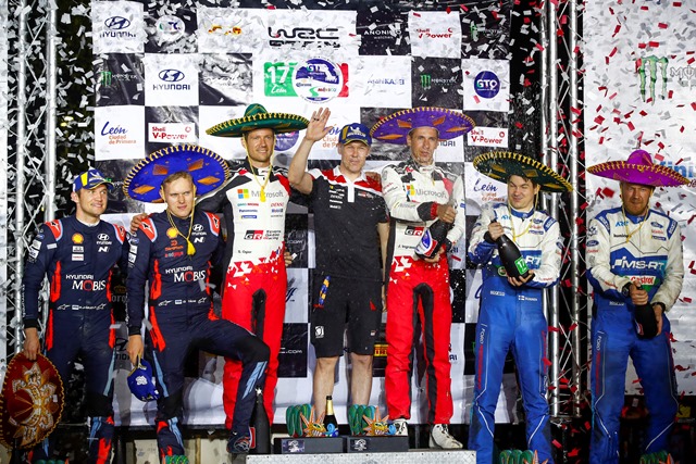 Ogier dominierte das Geschehen, nachdem er bereits auf der zweiten Prüfung am Freitag die Führung übernommen hatte – eine beeindruckende Leistung für die erst dritte Rallye in Toyota Diensten und den ersten Schotterwettbewerb der Saison überhaupt. Seinen Vorsprung von 13,2 Sekunden baute er am Samstag mit einem souveränen Prüfungssieg weiter aus. Am Ende war Ogier 27,8 Sekunden schneller als der ärgste Verfolger. Damit sicherte er sich seinen sechsten Mexiko-Sieg in acht Jahren – Erfolge, die er am Steuer von insgesamt vier verschiedenen Rallyewagen einfuhr.