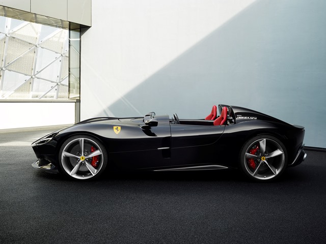 Le Ferrari Monza SP1 e SP2 sono vetture uniche, con un design originale ed esclusivo, il miglior rapporto peso-potenza per una vettura in configurazione barchetta grazie all’utilizzo esteso di fibra di carbonio nella costruzione e dettagli specifici, come proiettori e luci posteriori, ruote e interni, che le impreziosiscono. Dotate del motore più potente mai uscito dai cancelli di Maranello, un V12 con 810 cv, raggiungono i 100 km/h in 2.9 secondi, i 200 km/h in 7.9 secondi.