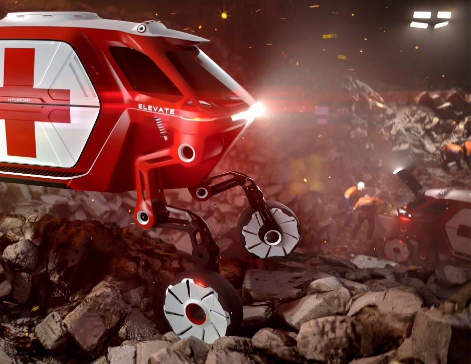 Elevate è un concept completamente nuovo che crea una nuova categoria di veicoli, gli UMV, Ultimate Mobility Vehicle. Questo prototipo combina il potere della robotica e della tecnologia EV per portare le persone dove nessun altro veicolo è mai stato prima. Le ruote con gambe robotizzate consentono infatti agli utenti di guidare, camminare o persino arrampicarsi sui terreni più insidiosi.