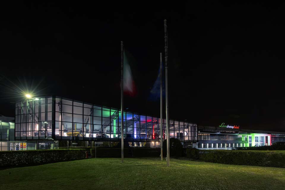 Questa attività riceve consenso e favore della Regione Emilia-Romagna e avviene in collaborazione con l’Università di Bologna. Nello specifico, il laboratorio diretto dal Prof. Francesco Saverio Violante, del Dipartimento di Scienze Mediche e Chirurgiche, si occuperà dei test di validazione dei dispositivi sanitari realizzati da Lamborghini, prima della consegna in struttura. In segno di unità e sostegno all’intera Nazione, che sta affrontando l’emergenza Coronavirus, Lamborghini illumina ogni sera gli edifici dello storico stabilimento di Sant’Agata Bolognese con il tricolore.