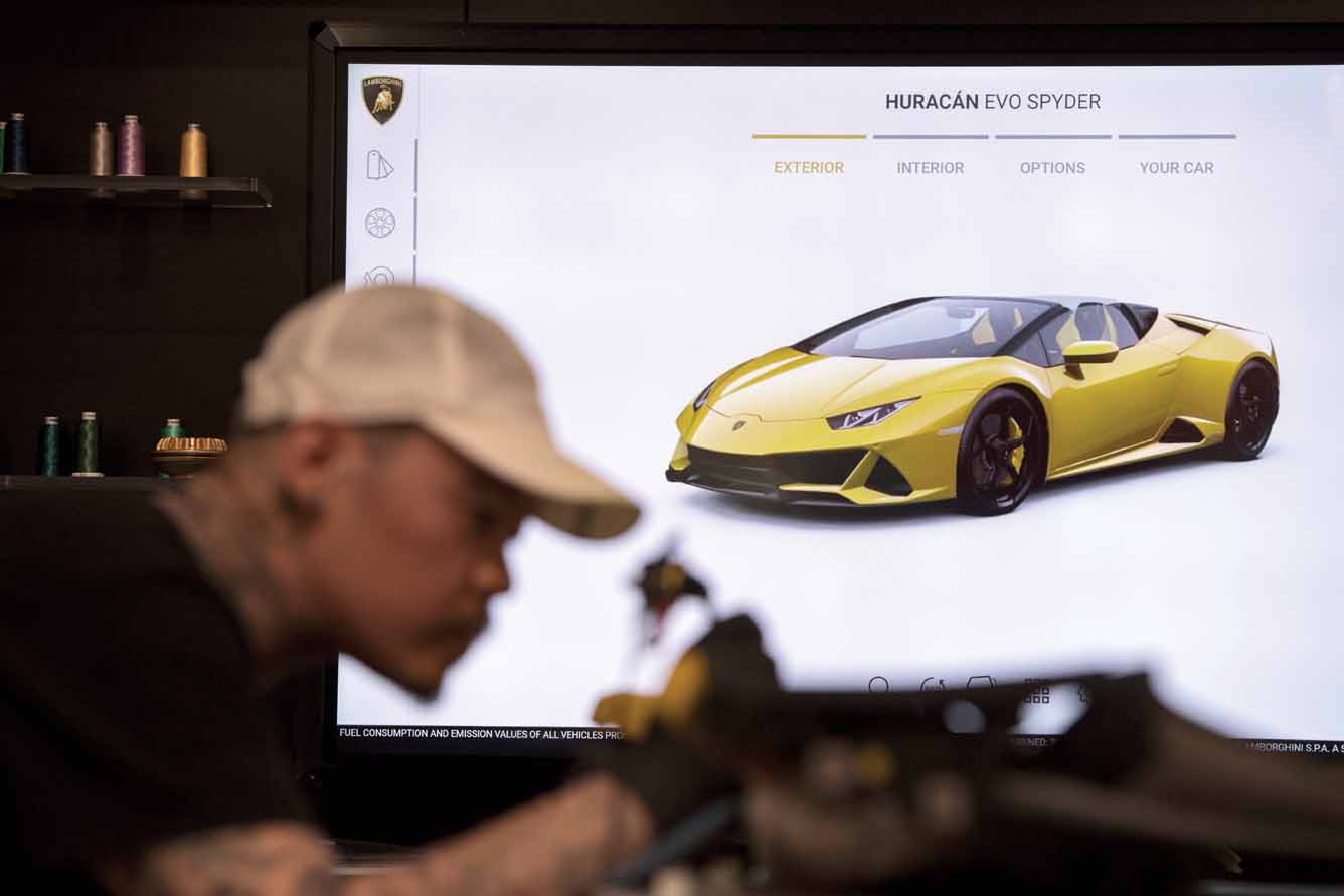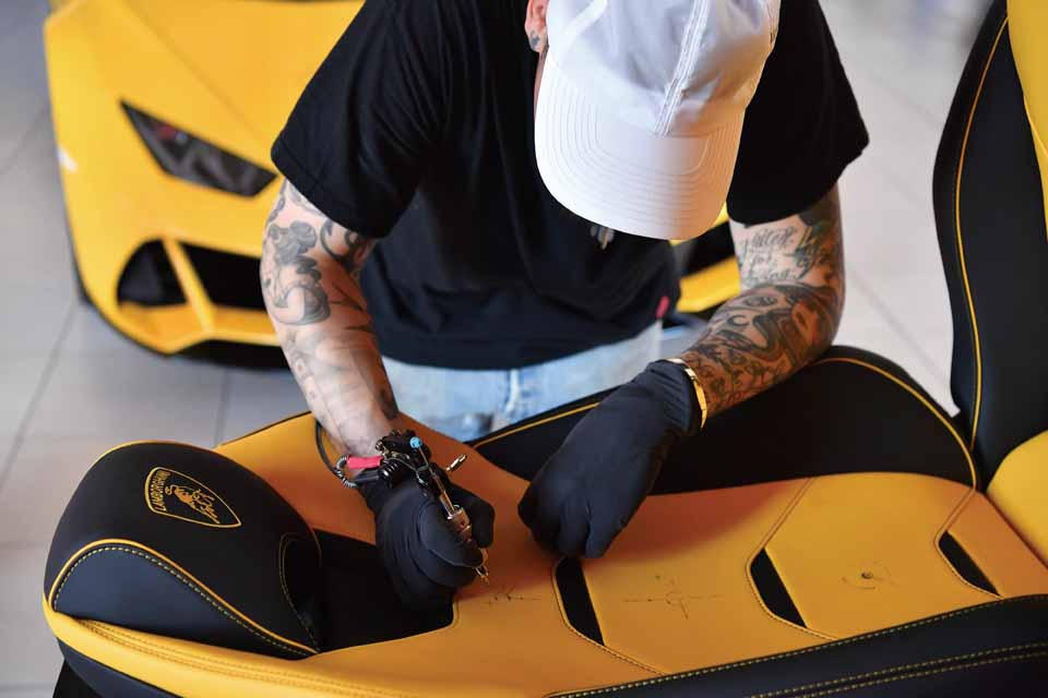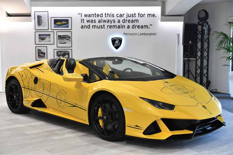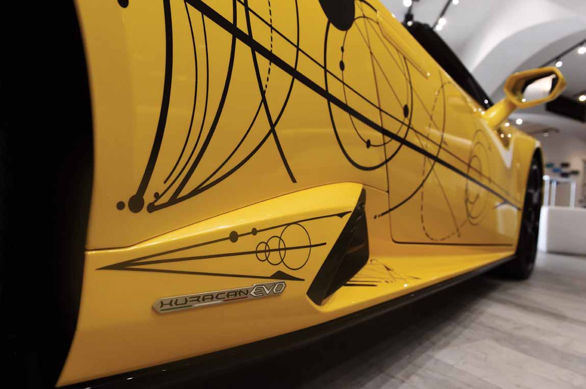 Mostrata in anteprima esclusiva a un pubblico di oltre 200 persone, tra ospiti e VIP, presso la Lamborghini Lounge di Porto Cervo, questa vettura riassume in sé tutte le potenzialità di personalizzazione offerte dalla Casa del Toro. Lo statunitense Dr. Woo, apprezzato da milioni di follower in tutto il mondo e amato dall’élite di Hollywood, è celebre per i propri tatuaggi, coniugazione tra il mondo dell’arte e quello della moda. Il suo stile unico e del tutto personale, che combina linee finissime e tese a motivi complessi, risalta su questa Huracán EVO Spyder in colore Giallo Inti.
