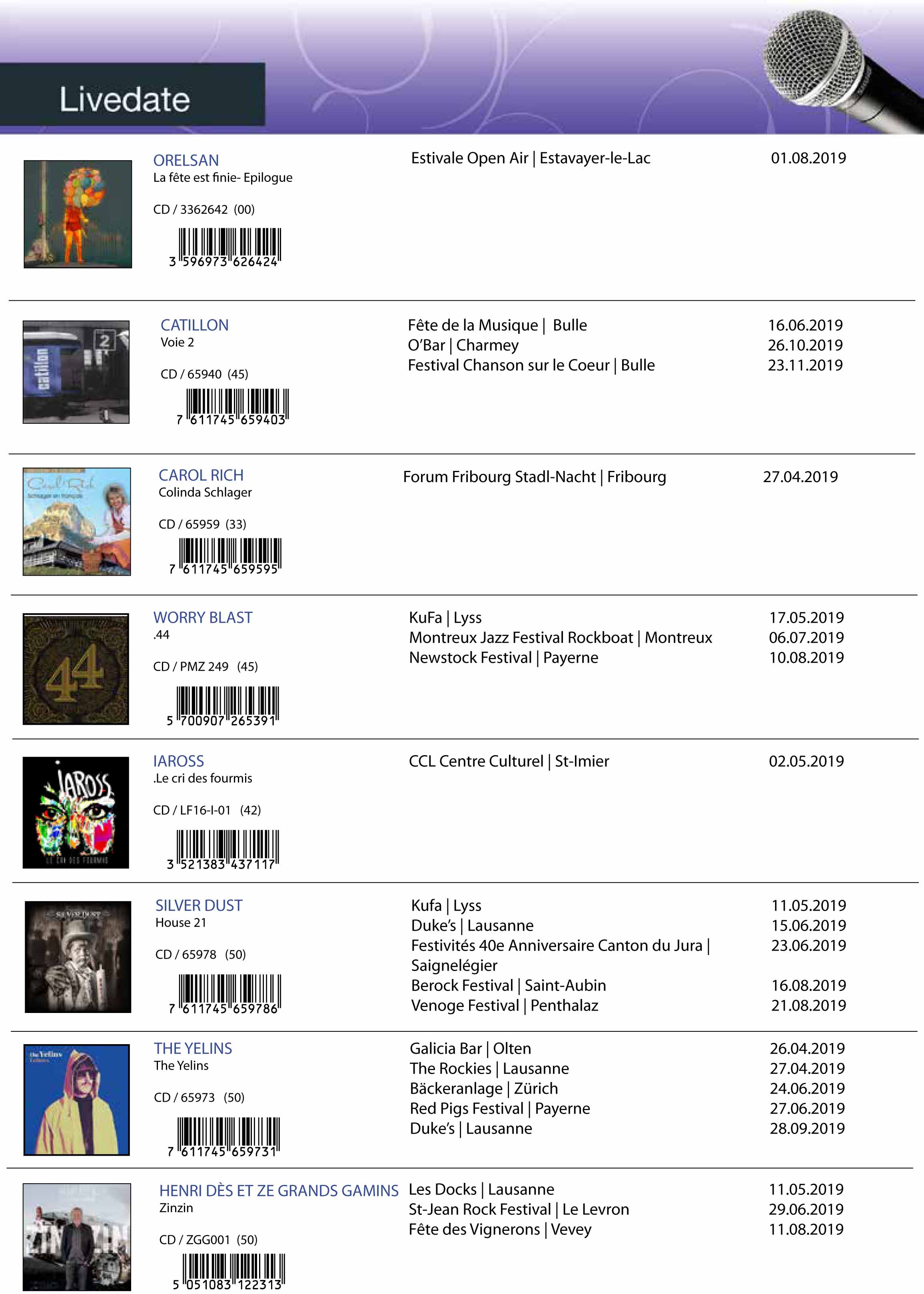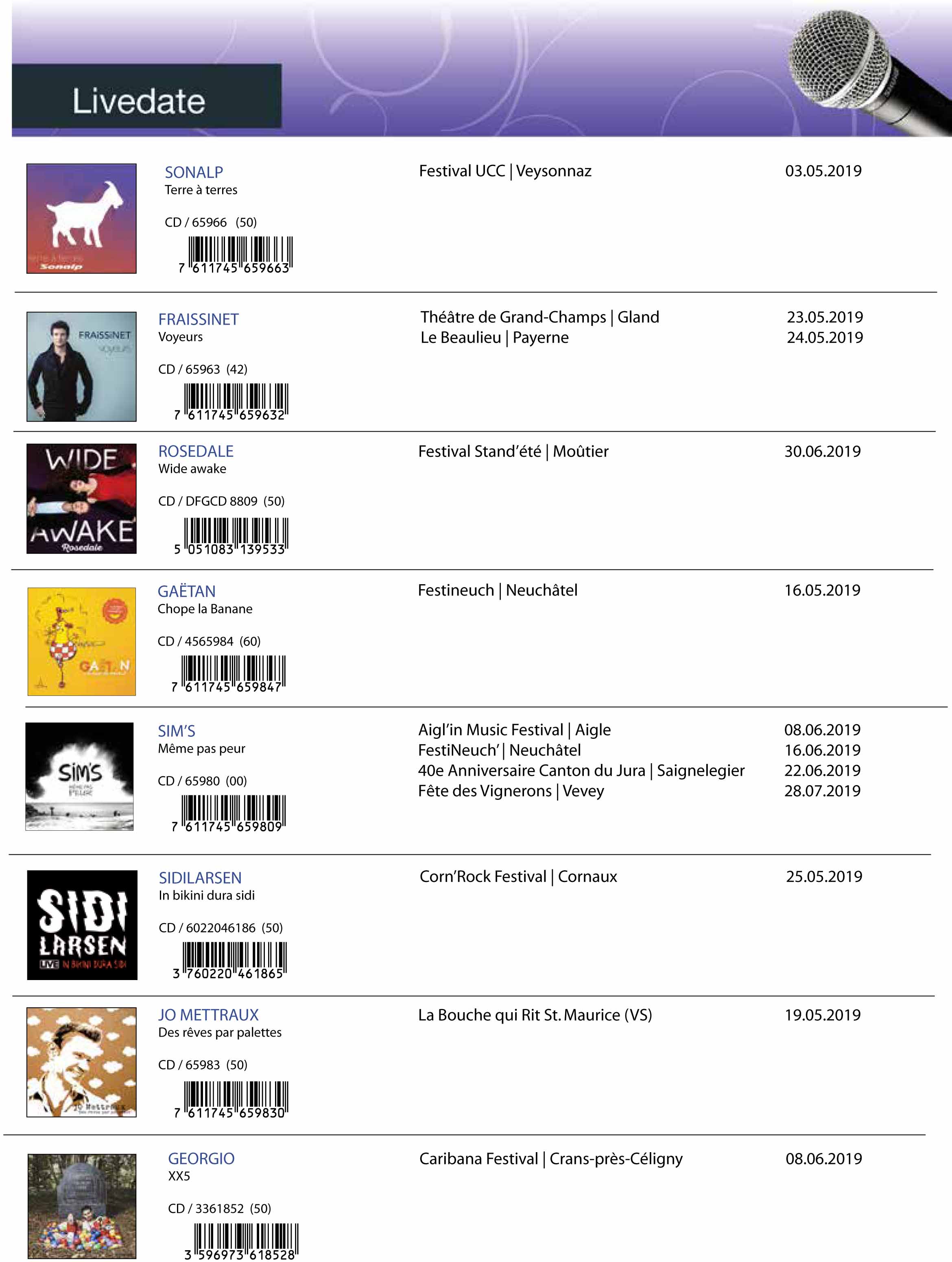 In concerto Sonalp, Fraissinet, Rosedale Carol Rich, Gaetan, Sim’s, Sidilarsen, Orelsan, Catillon, e tanti altri da Veysonnaz a St. Maurice, da Cornaux a Estavayer-le-Lac, da Bulle a Friborgo, da Monterux a Vevey a Losanna …