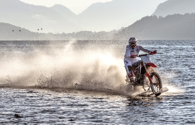 LUCA COLOMBO TENTA IL RECORD MONDIALE DI VELOCITÀ SUL LAGO DI COMO CON LA HONDA CRF 450R –