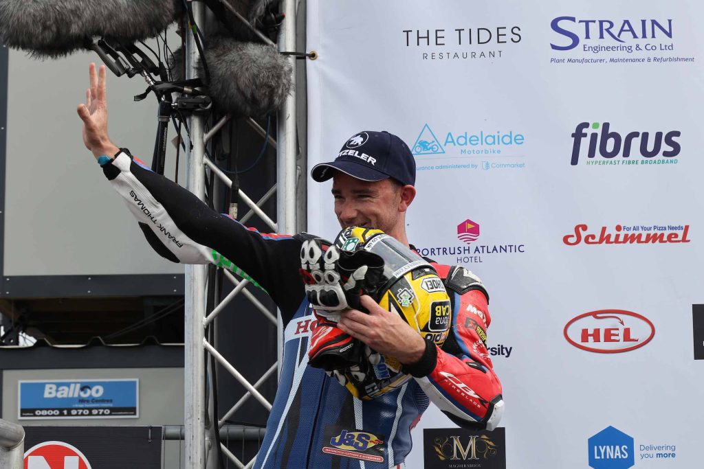 Per i sette giri della feature race Superbike, problemi di sicurezza legati a pneumatici competitor hanno permesso ai soli piloti METZELER di scendere in pista. Proprio come accaduto nella gara di apertura, Irwin si è portato immediatamente in testa, tallonato da vicino dall’impressionante Cooper (Hawk Racing Suzuki). Il pilota della Honda alla fine è riuscito a guadagnare un buon vantaggio e a conquistare la sua sesta vittoria consecutiva nella classe Superbike della North West 200, successi tutti ottenuti utilizzando pneumatici METZELER RACETEC™ RR Slick. A completare il podio con il terzo posto è stato Josh Brookes, che è tornato in questa competizione per la prima volta dal 2014.