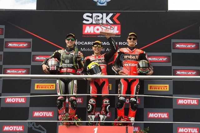 Ai rivali, primo fra tutti il quattro volte Campione del Mondo Jonathan Rea su Kawasaki, non è restato che lottare per i gradini bassi del podio su cui, nel corso del fine settimana, sono saliti, oltre al nordirlandese, anche l’altro pilota Ducati, Chaz Davies, e Alex Lowes su Yamaha.