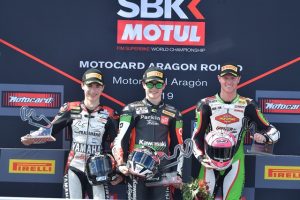 Dopo pochi giri anche Alex Lowes (Pata Yamaha WorldSBK Team / Yamaha YZF R1) prova a guadagnarsi un gradino del podio superando il Campione del Mondo in carica che scivola in quarta posizione proprio davanti al compagno di squadra Leon Haslam. A cinque giri dal termine Alex Lowes è superato dai piloti ufficiali Kawasaki scivolando in quinta posizione. Haslam riesce anche a sopravanzare il compagno di squadra portandosi alle spalle della coppia Ducati. Ma il Campione del Mondo in carica non ci sta e sul finale riesce a sopravanzare sia il compagno di squadra sia Chaz Davies, rendendo vani i tentativi dei piloti Ducati di realizzare la prima doppietta stagionale. Álvaro Bautista taglia il traguardo per primo con quasi sette secondi di vantaggio su Jonathan Rea, secondo, e oltre sette secondi sul compagno di squadra Chaz Davies . Quarto posto per l’altro alfiere Kawasaki, Leon Haslam.