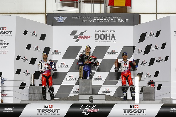 Losail, 4.4.2021 – Fabio Quartararo (Monster Energy Yamaha MotoGP) ha messo a segno un colpo da maestro al TISSOT Grand Prix di Doha, e dopo la vittoria di Viñales nel GP d’apertura ha consolidato la strategia vincente di Yamaha.