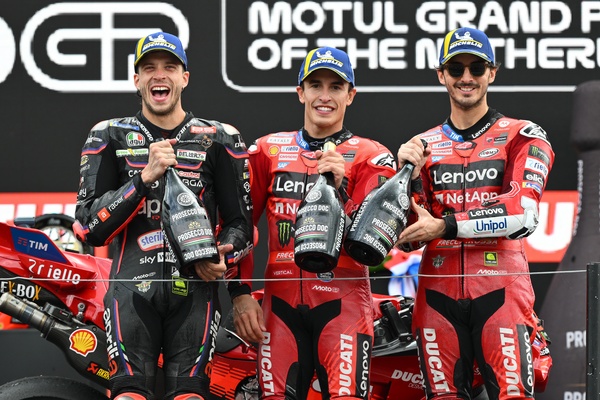 Tre giri alla fine. Bezzecchi a 0,2 secondi, non si avvicina abbastanza per tentare un sorpasso sul numero 93. Mancavano due giri. Bezzecchi dà il massimo, ma Marquez non commette errori e Pecco era ora a 0,9 secondi dal suo connazionale. Nel penultimo giro il distacco era salito a 0,7 secondi.