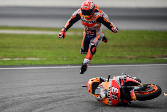 Lo spagnolo cerca la scia del francese che decide di non cedere al ricatto e rinuncia ad un paio di minuti di qualifica, passa per la corsia box nel tentativo di liberarsi di Marquez ma non c’è niente da fare perché il catalano continua a seguirlo a ruota. Tornano in pista ed è lì che Marquez perde il controllo della sua Honda facendo un high side alla curva 2. Ormai libero, Quarta approfitta degli ultimi minuti per spingere al massimo prendendosi la pole e vincendo una guerra psicologica che preannuncia essere appena iniziata.