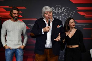 Alla presentazione meneghina anche un ospite d’eccezione, Giacomo Agostini, quindici volte campione del mondo e pilota leggendario della marca varesina. “MV Agusta rappresenta la mia vita”. Ha esordito il mitico Ago. “Ricordo il mio primo giorno a Cascina Costa: il conte Domenico Agusta mi fece fare cinque ore d’attesa prima di ricevermi; lo fece per vedere quanto fosse temprato il mio carattere. Ero campione italiano 125cc con Morini e disposto a tutto pur di coronare il mio sogno e cavalcare una MV”. Continua Agostini. “Direi che passione e competenza ci sono tutti. Diamo tempo alla scuderia Forward e al team MV Centro di ricerche di sviluppare una F2 che necessita di tanti collaudi. Fiducia, il podio arriverà presto”.