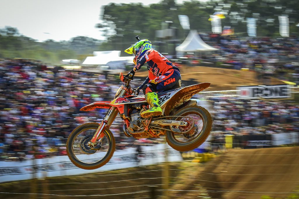AGUEDA (Portogallo) 19 maggio 2019 – Il Gran Premio di motocross del Portogallo 2019 ha regalato gare emozionanti, rimonte incredibili, cadute e colpi di scena. Tim Gajser del Team HRC è arrivato primo sia in Gara 1 sia in Gara 2, in entrambe le gare davanti ad Antonio Cairoli del Red Bull KTM Factory Racing.