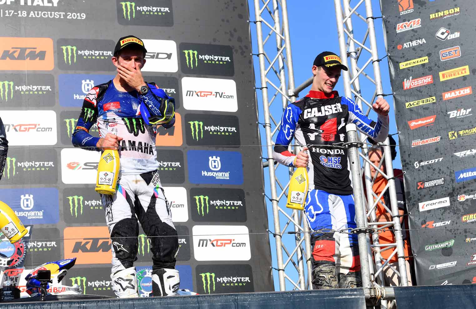 Tim Gajser: “It was crazy”. Sono super felice e non potrei desiderare una stagione o una squadra migliore intorno a me. Ieri sera non ho dormito molto, ma oggi è un grande giorno. Ho provato a fare questa gara come tutte le altre. Sono stato veloce nella prima gara anche se non ho avuto la migliore partenza, ma sono arrivato secondo e ho provato a vincere la gara, ma ero piuttosto nervoso e non ci sono riuscito. La seconda gara è stata migliore. Sono davvero felice di salire sul podio e di ottenere il titolo MXGP 2019. Inoltre, voglio ringraziare la mia famiglia, la mia ragazza e tutti i fan che mi seguono”.