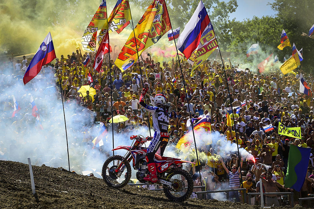 È stata sufficiente la prima manche a Tim Gajser per laurearsi Campione del Mondo della classe MXGP con tre GP di anticipo. Lo sloveno ha bissato il titolo che si era già aggiudicato nel 2016 al debutto nella categoria. Gajser, alla terza affermazione iridata firmata Pirelli degli ultimi cinque anni, poteva contare su un grande vantaggio in classifica e a Imola gli è bastato terminare terzo.