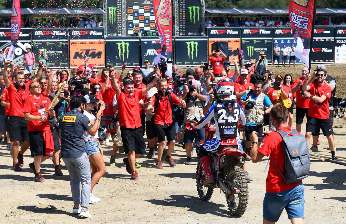 IMOLA (Italia) 18 agosto 2019 – Il 15° round del FIM Motocross World Championship si è concluso sullo storico circuito di Imola dove Tim Gajser del Team HRC ha conquistato il suo terzo titolo mondiale in carriera, primo pilota Honda a ottenere tale risultato.