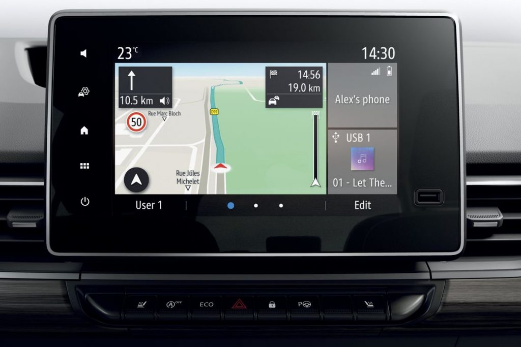 La tecnologia più moderna assicura che conducente e passeggeri possano rimanere in contatto con il mondo esterno grazie al sistema multimediale Renault EASY LINK, con mirroring dello smartphone e sistema di navigazione. Nel furgone lo smartphone può essere caricato senza fili.