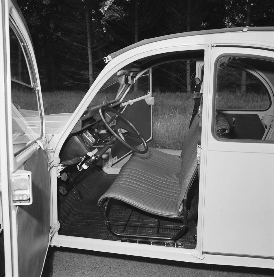 Dopo la Seconda Guerra mondiale, dopo aver giudicato “inguardabile” il progetto degli ingegneri, la Direzione si decise a coinvolgere Flaminio Bertoni e così l’Italiano ridisegnò la piccola Citroën dandole quell’aria simpatica (e geniale) che tutti conosciamo e che ha certamente contribuito al suo successo. I sedili della 2CV furono ri-disegnati in un attimo: erano sempre i tubi (in stile Prouvé) ma ciascuno costituiva un elemento autonomo, autoportante, con il rivestimento sospeso su semplici elastici con una sottile imbottitura. All’occorrenza, potevano essere tolti dall’auto per fare un pic-nic o mettersi comodi a leggere il giornale su un prato.