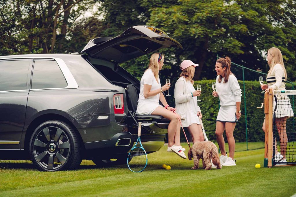 Il servizio Rolls-Royce Motor Cars London include il trasferimento dei clienti da casa, con tanto di champagne refrigerato alla temperatura ottimale a bordo di Phantom, Ghost o Cullinan, oltre naturalmente a un cesto di fragole zuccherate e panna fresca. A richiesta possono essere fornite anche le palle da tennis.