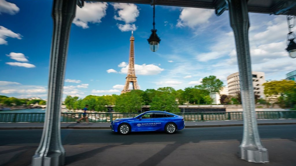 Per l’occasione la Tour Eiffel è stata illuminata per la prima volta di verde con l’energia rinnovabile dell’idrogeno, grazie al generatore a idrogeno GEH2®, sviluppato dalla start-up EODev di cui Toyota è azionista. James Olden, ingegnere di Toyota Motor Europe, Maxime le Hir, Mirai Product Manager, e Marie Gadd, manager PR di Toyota France erano gli altri conducenti del record Mirai.