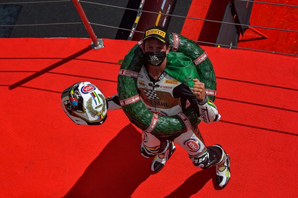 In WorldSBK Gara 2 invece, Chaz Davies (ARUBA.IT Racing – Ducati / Ducati Panigale V4 R) porta a casa una meritata vittoria dopo un solido weekend, in seconda posizione taglia il traguardo Michael van der Mark (PATA YAMAHA WorldSBK Official Team / Yamaha YZF R1), dopo una brillante battaglia con la Yamaha di Garrett Gerloff (GRT Yamaha WorldSBK Junior Team / Yamaha YZF R1) che al suo primo anno in Europa ottiene il suo miglior risultato in carriera e riporta la bandiera statunitense sul podio dopo quattro anni.