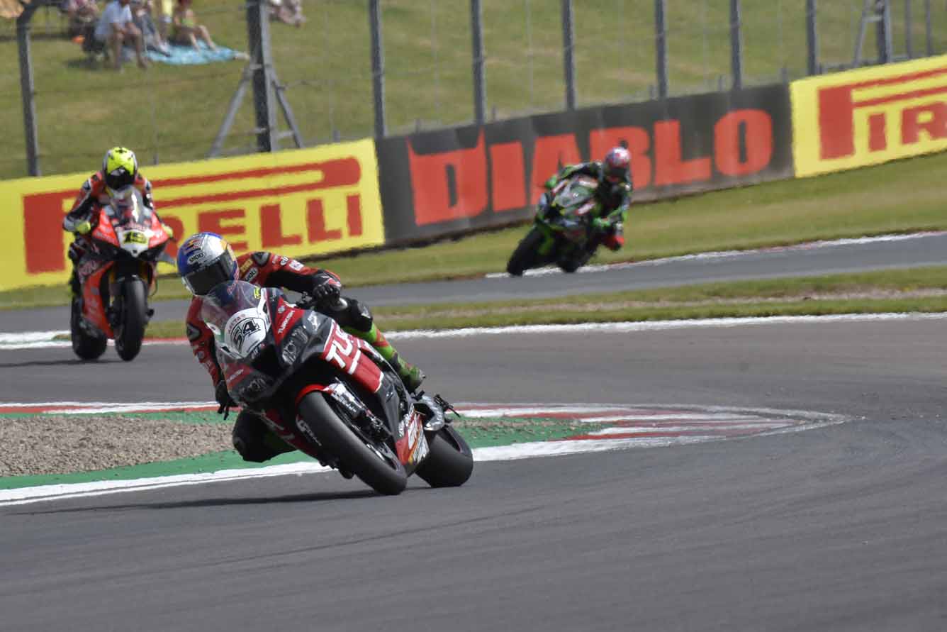 Castle Donington (Inghilterra), 7 luglio 2019 – Il quattro volte campione del mondo in SBK è scattato dalla pole e ha difeso la testa della gara contro Toprak Razgatlioglu e Alvaro Bautista.