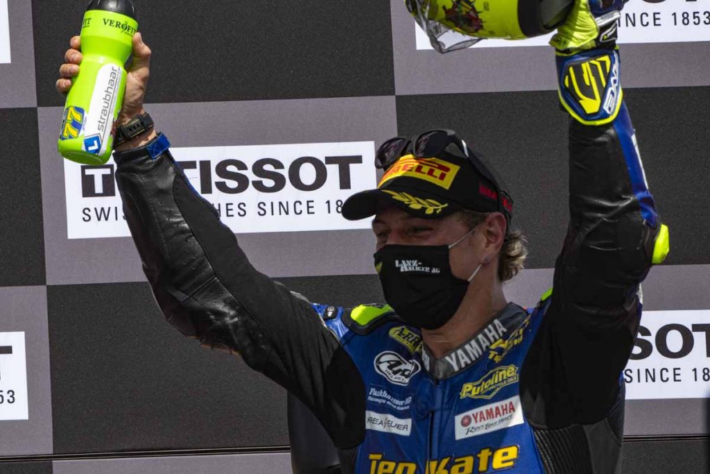 Gonzalez continua a tallonare il leader Aegerter, ma a tre giri retrocede di una posizione a favore del pilota sudafricano. Alla bandiera a scacchi resta un podio tutto Yamaha: Dominique Aegerter primo, Steven Odendaal secondo e Manuel Gonzalez terzo.