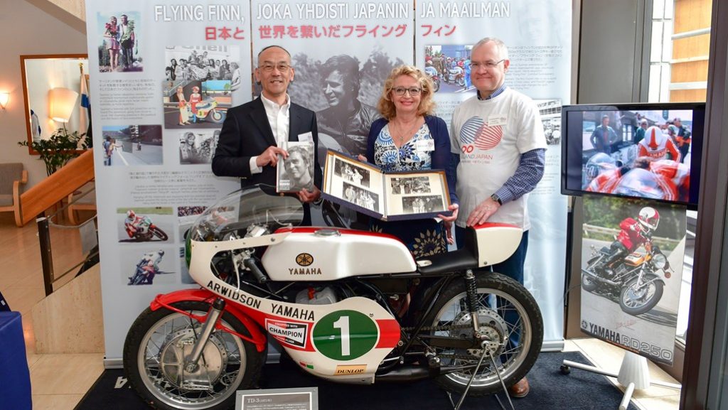 Alla celebrazione dei 100 anni di relazioni diplomatiche tra Finlandia e Giappone, Yamaha Motor ha commemorato con una mostra il suo pilota Jarno Saarinen scomparso in un tragico incidente a Monza il 20 maggio 1973